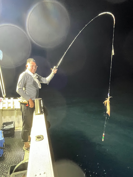 水深40mでシロイカ狙い!最初ポロポロっと10杯程釣れましたが、その後アタリ止まってしまい沖へ移動。スルメタルは徐々にペース上がってきてラストはベイトオモリグのお客さん入れノリでした。竿頭シロイカ3杯、スルメ32杯ゲット。ありがとうございました。