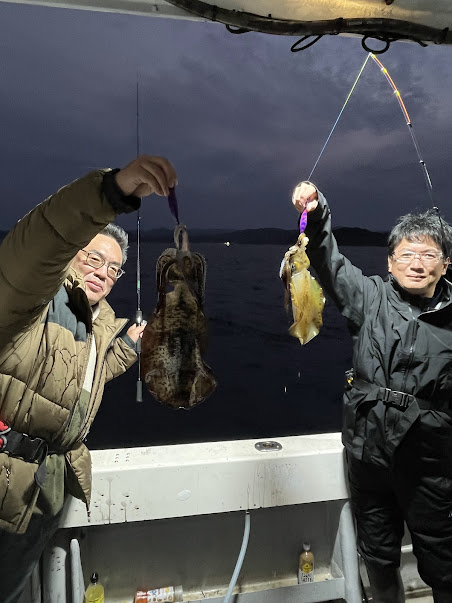 夜アオリ出てきました!夕マズメに良型がパタパタっとヒットしてきて良い感じでしたが、その後がダメでトップ5杯、3杯~でした。厳しい中ありがとうございました。