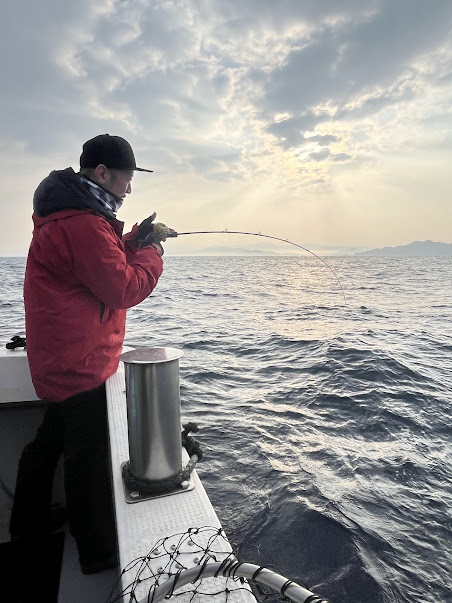 冬型緩み出船!久々の海は魚探反応少なめでしたが何とかメジロ、ハマチの顔見れました。ありがとうございました。明日出ますガラガラです。ご予約お待ちしております。